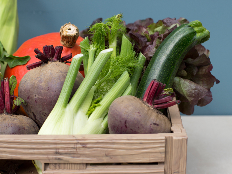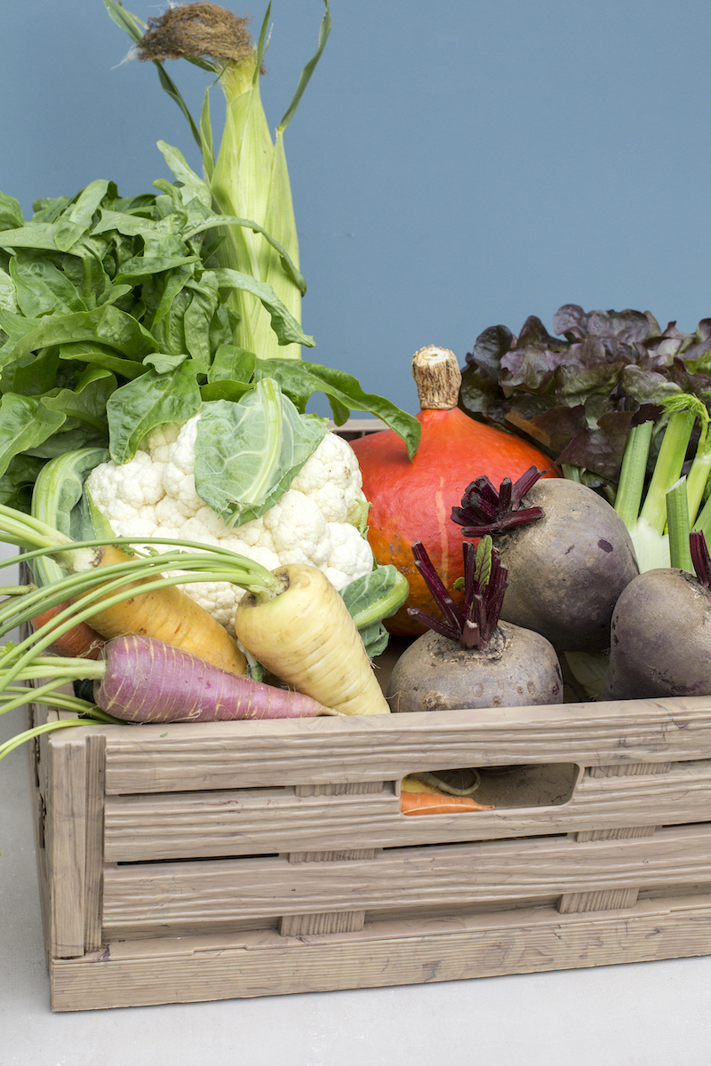 Op een vaste dag in de week staat er een krat met groenten voor je klaar. In de groentekrat vind je ongeveer vijf verschillende groenten, biologisch geteeld en vers van het land. Geschikt voor drie á vier maaltijden. We vullen jaarrond kratten en streven er naar zoveel mogelijk van eigen land te leveren. Inkopen proberen we zo veel mogelijk regionaal te doen maar om in de wintermaanden toch voldoende variëteit te hebben kopen we dan regelmatig in uit zuidelijkere Europeese landen. In de krat zit iedere week een brief met nieuws van de tuinderij, kook-inspiratie en recepten.